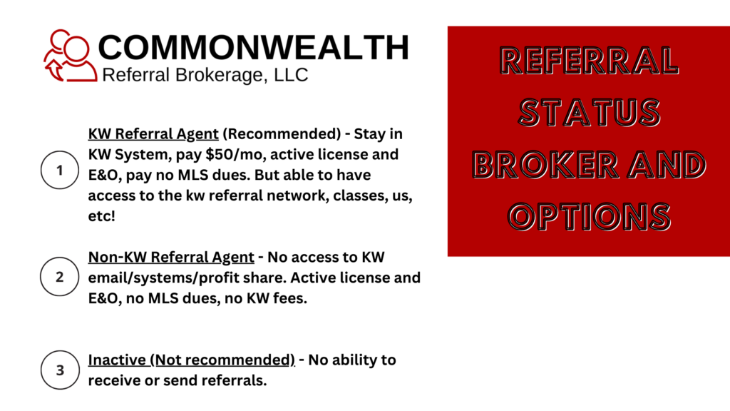 KW7H has an option for you and it is our KW Referral Brokerage!​